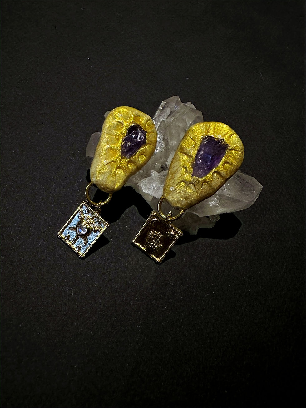 Each piece carries its own story, handcrafted with metals, clay and raw crystals like clear quartz, smoky quartz, and amethyst. These materials aren’t just elements—they are portals to strength, clarity, and emotional connection. The designs speak to the interplay between fragility and resilience, reminding us that even in our imperfections, there is beauty, power, and light.